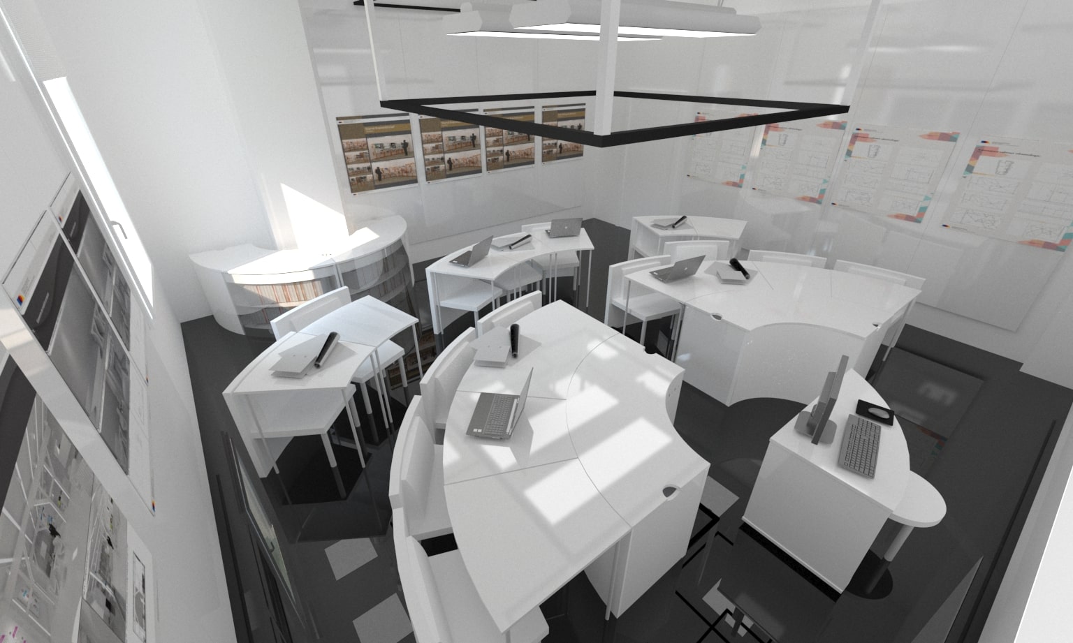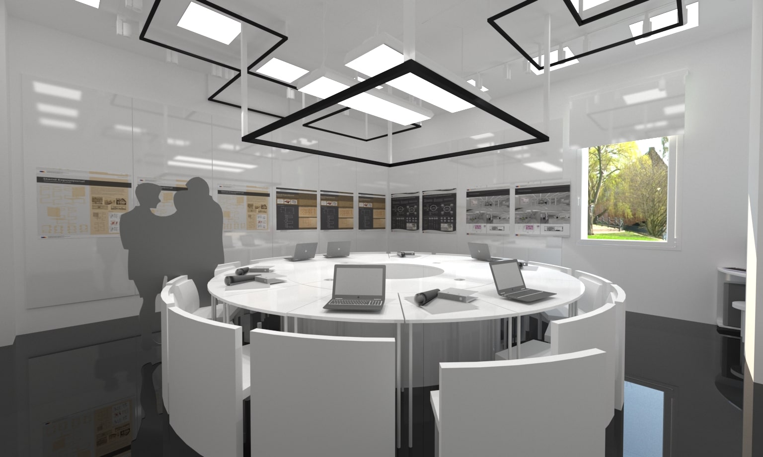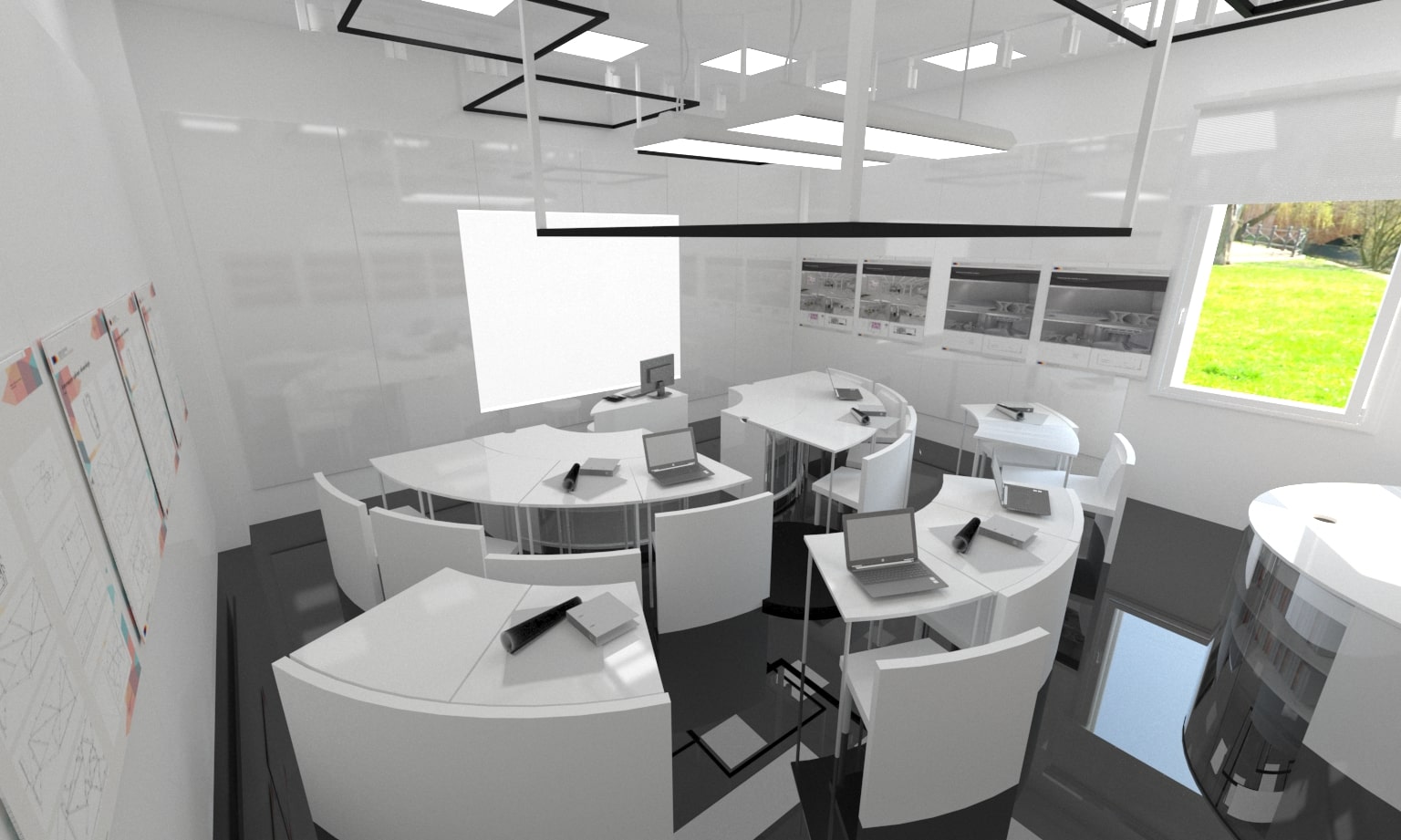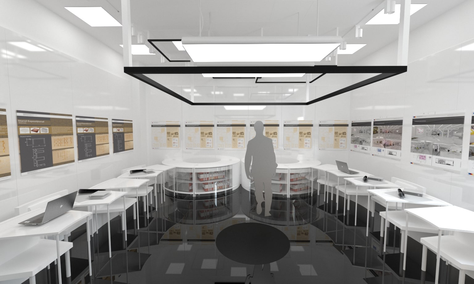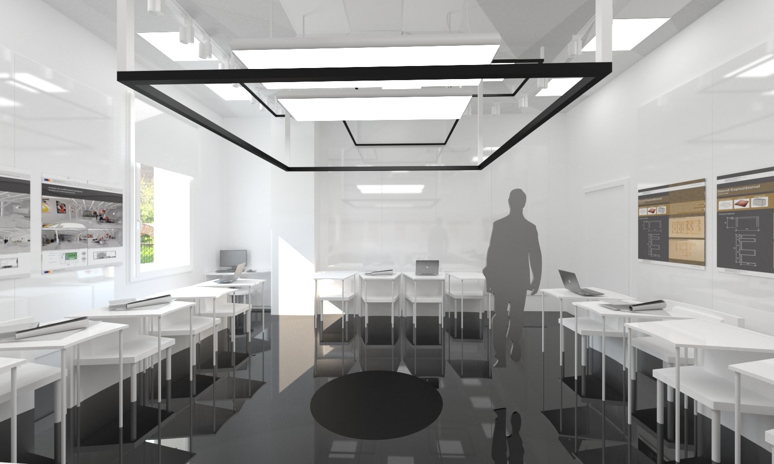 Acest proiect de sală de conferințe a fost conceput cu funcționalitatea și flexibilitatea în minte. Mobilierul modular permite o reconfigurare ușoară pentru a se adapta la diferite dimensiuni și nevoi ale grupurilor. Paleta de culori neutre și designul elegant și modern oferă un aspect profesional și coerent. Atenția acordată acusticii asigură desfășurarea reuniunilor fără distrageri sau întreruperi. În general, acest spațiu este perfect pentru întâlniri productive și de succes.